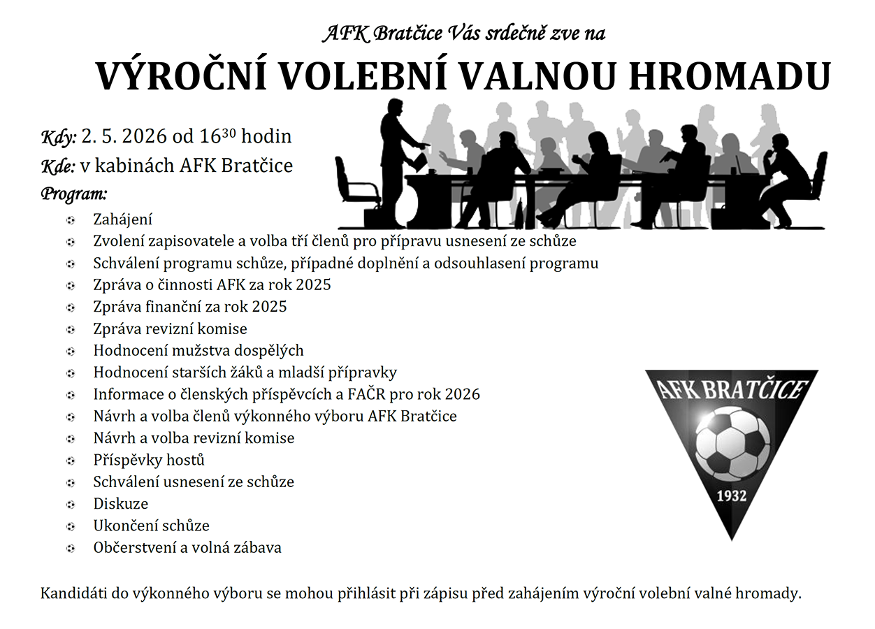 AFK Bratčice zve všechny členy AFK na výroční volební valnou hromadu, která